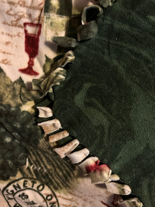 Tuscany Wine Print Thick Fleece Tie Blanket/Throw