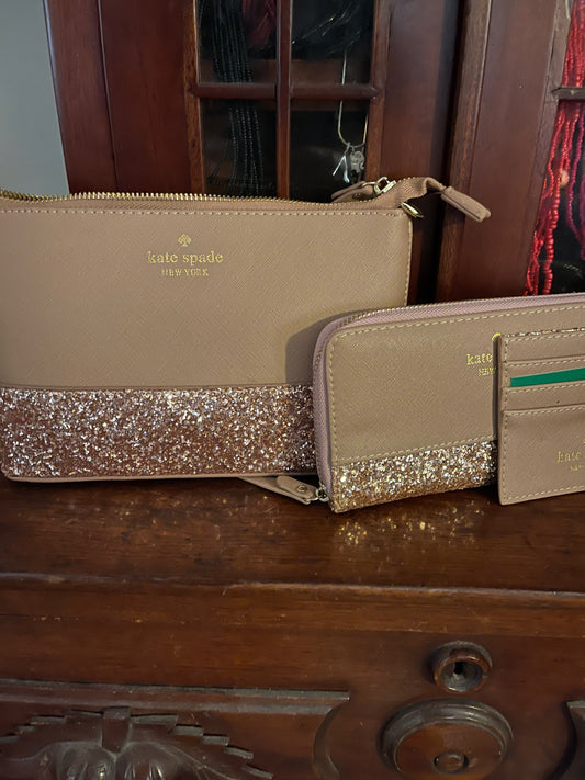 Kate Spade Glitter Crossbody, Wallet and Card Holder Set