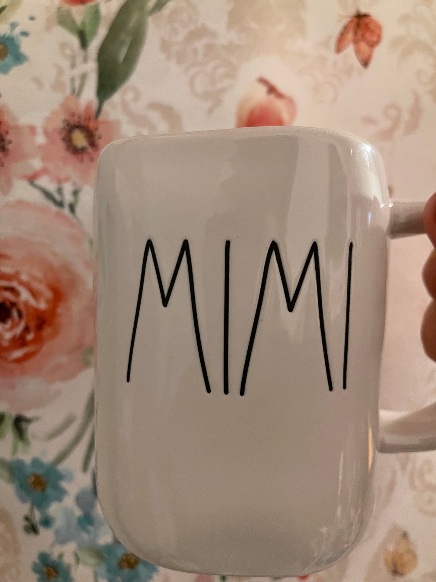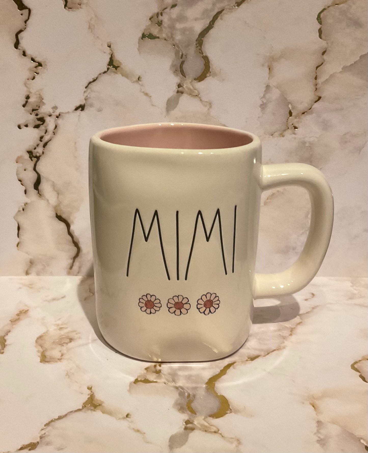 Rae Dunn MIMI Pink cup with Pink Daisies